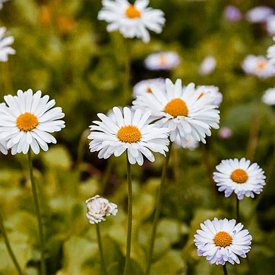 6. 데이지: 데이지는 순수함과 새로운 시작을 상징하는 식물로, 잎이 작고 흰색 꽃을 피우는 것이 특징입니다.